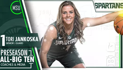 EAST LANSING, Mich. - To kickoff the beginning of Big Ten Women's Basketball Media Week, the conference released the Preseason Coaches and Media Polls, in addition to the 10-member preseason All-Big Ten team on Monday. Senior guard Tori Jankoska was named to the Preseason All-Big Ten team by both the coaches and the media. Michigan State was selected third in the Coaches Poll.