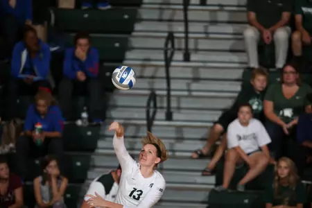 Brooke Kranda contributed a season-best 17 kills while establishing new career bests in digs (7) and tying her career high with five blocks. Chloe Reinig had 12 kills along with six blocks and five digs, while middles Allyssah Fitterer and Alyssa Garvelink each had seven blocks - Fitterer added eight kills, and Garvelink hit a team-best .357 on seven terminations. Abby Monson established a new career best with 25 digs.