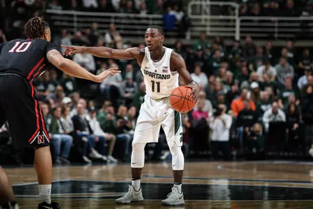 During the current homestand, freshmen guards Joshua Langford and Cassius Winston have elevated their play. Over the last four games, Langford is averaging 9.0 points, shooting .571 (12-21) from the field and .538 (7-13) from 3-point range, while Winston is averaging 12.5 points, 9.3 assists and just 2.0 turnovers. In the last five games, Winston has totaled 44 assists against just 11 turnovers.