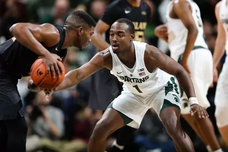 The 2015-16 Spartans led the nation in 3-point field goal percentage (.434) and made a school record 321 3-pointers. This year's Spartan squad must replace Bryn Forbes (112) and Denzel Valentine (104) who combined for 216 3-pointers last season. MSU is shooting .374 from behind the arc this year, as Eron Harris (.386, 27-70), Matt McQuaid (.339, 19-56) and Miles Bridges (.385, 15-39) lead the team in made 3-pointers. Last season, Harris shot .439 (43-98) from behind the arc, while McQuaid hit .409 (27-66) of his attempts.