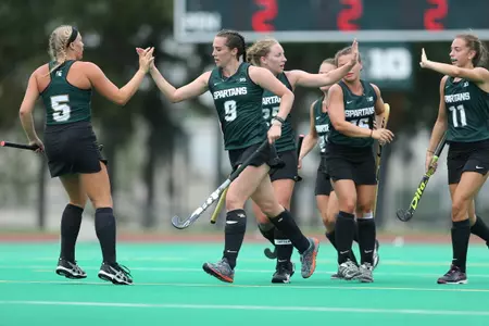 The Spartans struck quickly, earning the game's first penalty corner less than three minutes into the contest. MSU capitalized on the set piece, as Lauren Bonness sent in a shot that was redirected in front by Megan Fenton and into the net.