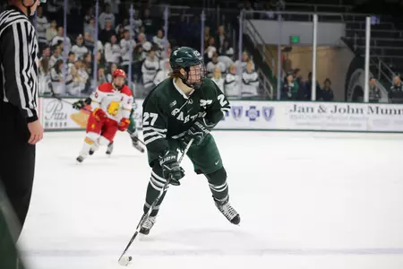 The Spartans were able to regain some offensive momentum with consecutive power plays later in the period and made good on the second chance as Mason Appleton got his team-leading ninth goal of the year to put the Spartans in front, 2-1.