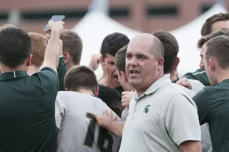EAST LANSING, Mich. - Despite non-stop rain, No. 6 Michigan State men's soccer shut down Penn State, 1-0, at a soggy DeMartin Stadium on Saturday afternoon. The win was the 100th career victory for Spartan head coach Damon Rensing.