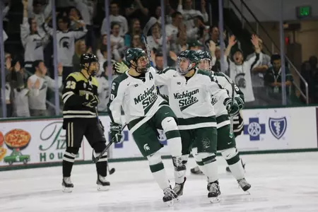 Sophomore center Sam Saliba sealed the victory with an empty-net goal, while MSU was on a power play, with 19 seconds left. It was Saliba's second goal of the night, his third two-goal outing of his MSU career.
