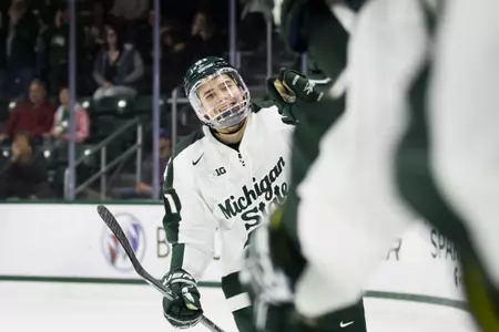 EAST LANSING - The Michigan State hockey team edged Lake Superior State, 4-3, on Friday night at Munn Ice Arena to improve to 3-2 overall and remain unbeaten at home. Eight different players picked up a point for the Spartans, led by Logan Lambdin who had a goal and an assist.