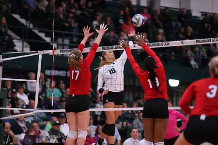 - Michigan State honored seniors Rachel Minarick (4,000 career assists) and Alyssa Garvelink (500 career blocks) for their career milestones in a brief pre-game ceremony.