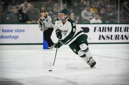 Mitchell Lewandowski scored twice and added an assist for the Spartans (4-5, 0-3), while Cody Milan had a goal and an assist.