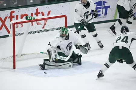 UNIVERSITY PARK, Pa. - Michigan State and Penn State played to a 2-2 tie in the second of a two-game series between the teams on Saturday at Pegula Ice Arena in University Park, Pa. The Spartans (7-6-1, 1-4-1-1 Big Ten) won the shootout, 2-1, to earn the extra point in the Big Ten standings.