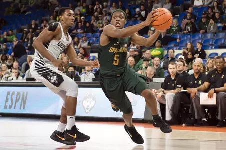 UConn would pull to within 45-40 on a 3-pointer from Terry Larrier and the lead was again five points, 47-42, when junior guard Matt McQuaid hit a 3-pointer that triggered a 20-11 run as the Spartans took a 67-53 advantage on a Winston layup with 4:53 left to play.
