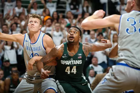 The Spartans limited Hillsdale to just five first half field goals and 17.9 percent shooting from the field and led by as much as 23 points in the opening 20 minutes.
