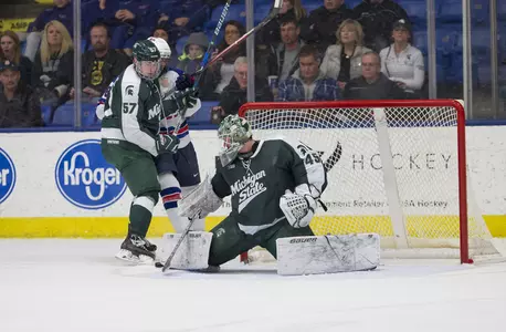 PLYMOUTH -- The Michigan State hockey team won its final game of the calendar year on Saturday night, topping the U.S. National Team Development Program U-18 Team, 3-0, in an exhibition contest at USA Hockey Arena in Plymouth. The Spartans were led by a pair of USNTDP alums in Patrick Khodorenko, who scored twice, and goaltender Ed Minney, who made 20 saves in a shutout effort.