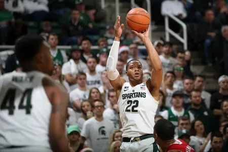 The Spartans took a 54-33 lead at the break, with Bridges nearly topping his season high for points (21) in the opening half by scoring 20 and leading three players in double figures. MSU hit 70.0 percent of its field goals (21-of-30) and connected on six 3-pointers.
