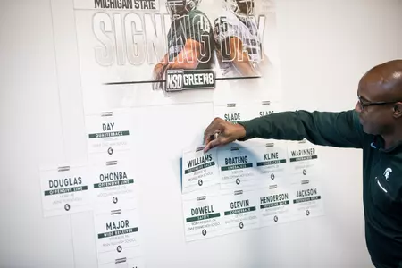 EAST LANSING, Mich. -- Michigan State football introduced the Spartans' 2018 recruiting class Wednesday afternoon at a press conference inside the Izzo Family Media Center at Spartan Stadium.