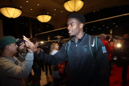 Michigan State was greeted at the team hotel by the Holiday Bowl committee, as well as a mariachi band, and many cheering Spartan fans clad in green and white.