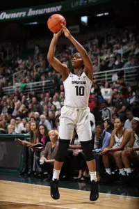 • Three Spartans scored in double figures. Redshirt-sophomore guard Shay Colley netted 16, redshirt-senior guard Branndais Agee recorded 10 and freshman forward Sidney Cooks tallied 11.