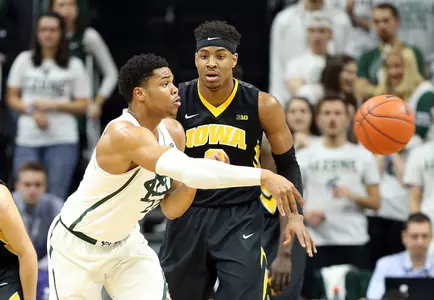Michigan State held the Hawkeyes to 33 percent shooting, approaching their season low of 31 percent, and outrebounded Iowa 46-32. The Spartans, though, had 21 turnovers for a second straight game.