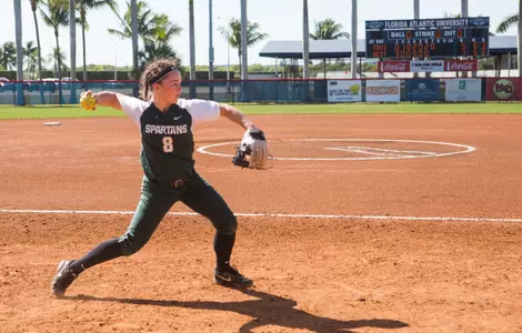 The Spartans got homers from Kaitlyn Eveland and Lea Foerster, a triple from Ebonee Echols, and a nine-strikeout performance from starter Bridgette Rainey, which tied her career best. The host Owls became just the third team to register double-digit hits against the Spartans this season, as KSU got 15, the most surrendered by MSU in a game this year. MSU stranded eight runners, while KSU left 12 on the basepaths.