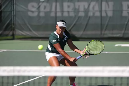 After dropping the doubles point, the Spartans recovered and flexed during singles play. All five MSU victories came in straight sets, and Emily Metcalf and Sammie Memije also earned wins on the afternoon. It was Memije's first career conference win in the Green in White.