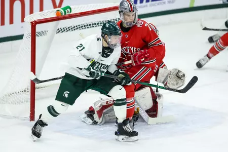 EAST LANSING - The Michigan State hockey team dropped the opening game of a weekend series with No. 8 Ohio State, 4-1, on Friday night at Munn Ice Arena. Ohio State used two goals early in the first and then two more in the opening 32 seconds of the middle period to top the Spartans.