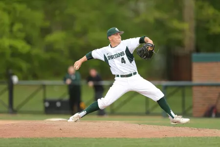 The Spartans rallied in the eighth, as Antoncic led off with his pinch-hit walk. Kelley followed with a single through the left side, then Gleaves laced his double to right center, plating Antoncic. Sophomore second baseman Bailey Peterson then walked, before junior third baseman Marty Bechina grounded into a double play, scoring Kelley. Next up, Roskelly belted a two-run shot to left for his ninth career round-tripper, capping MSU's four-run frame and giving the Spartans a 4-3 lead.
