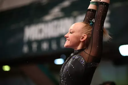 The Spartans opened on vault, posting a team score of 48.625. Freshman Isabelle Wittebort made her Spartan debut in the event, followed by the senior Jaranowski who posted the first of her two-straight career bests with a 9.675.