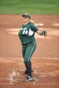 MIchigan State (9-11) had baserunners in every inning, stranding nine baserunners in the game. McKenzie Long broke up the no-hitter in the bottom of the fifth with a bunt single.