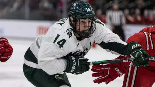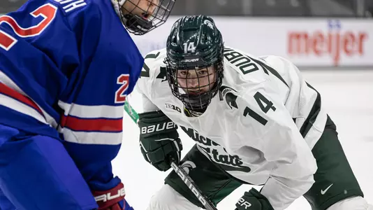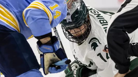 AHCA All-America Scholar ...Skated in 37 of 38 MSU games ... Tallied a goal and four assists in a defensive forward role ... Blocked 22 shots, good for a tie for first among forwards ... Led MSU with a 55.7% faceoff winning percentage (244-194) ... Opened his Spartan career by winning 19 of 23 faceoffs in the series against Bowling Green (10/7-8) ...Picked up his first point as a Spartan on a David Gucciardi goal vs. LIU (10/21) ... Tallied an assist and was a +2 with four blocks in the sweep of Ohio State (11/10-11) ... Had three blocked shots in a split at Penn State (11/18-19) ... Continued his proficiency in the faceoff circle with 14 wins in 22 draws  in the sweep at Miami (11/25-26) ... Won 15 of 22 faceoffs (.682) in the Minnesota series (12/2-3) ... Won seven of eight faceoffs at Michigan and 12 of 19 in the series (12/9-10) ... Picked up an assist in a 3-2 OT win over Penn State (1/13), assisting on Cole Krygier’s game-winner ... Recorded his first goal as a Spartan and also had an assist in the opener at Wisconsin (2/18).